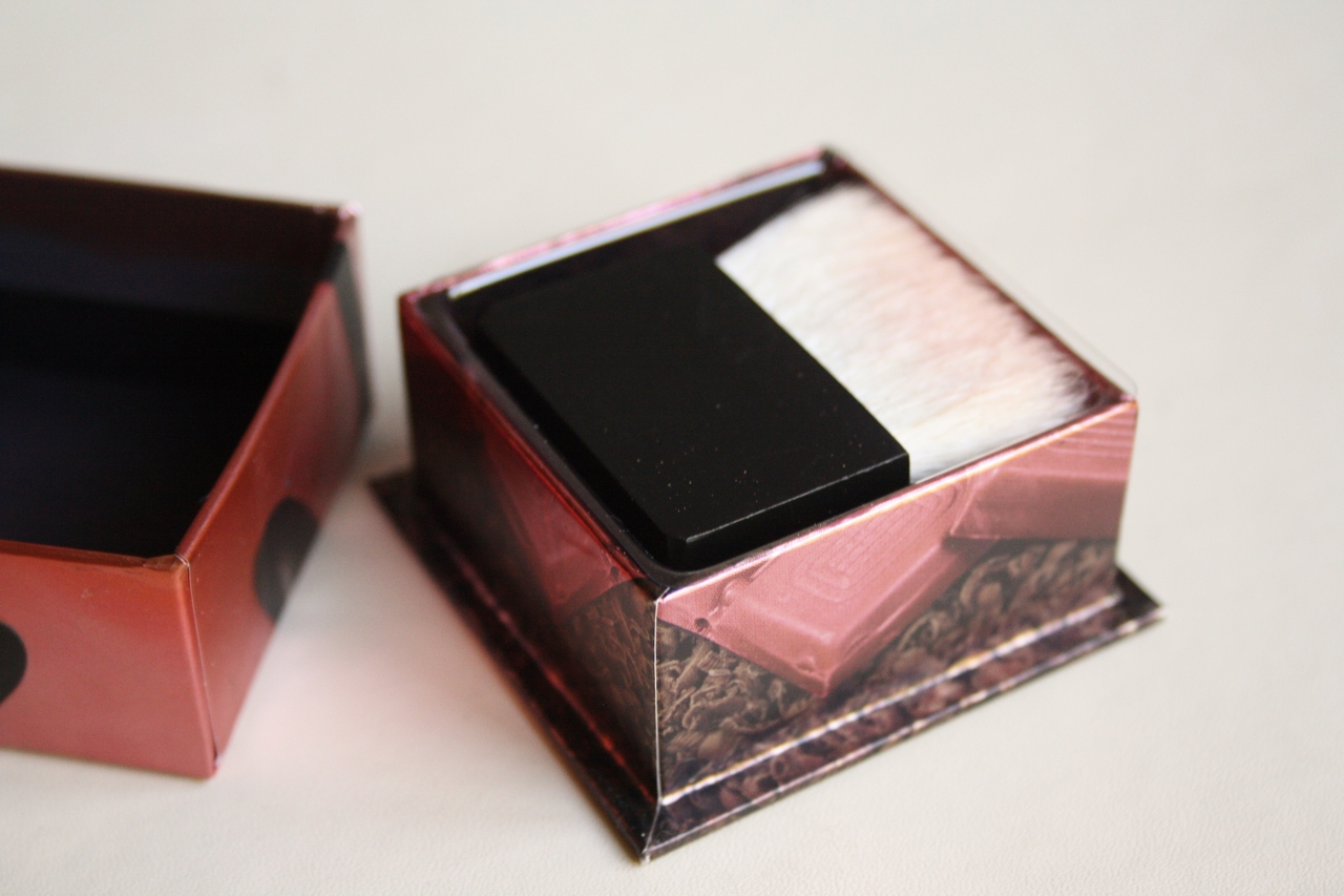 Inside the usual beautiful Benefit packaging you’ll find a mini square brush and a four little triangles of finely milled blush powder – a light pink, lilac purple, salmon pink and a peach that smell gorgeous. I mix the colours together with the brush before applying the blusher and it gives a lovely subtle pink colour with a highlighted finish that’s perfect for my super pale skin tone. It just adds a flush of colour to the cheeks with a nice shimmer that catches the light wonderfully.